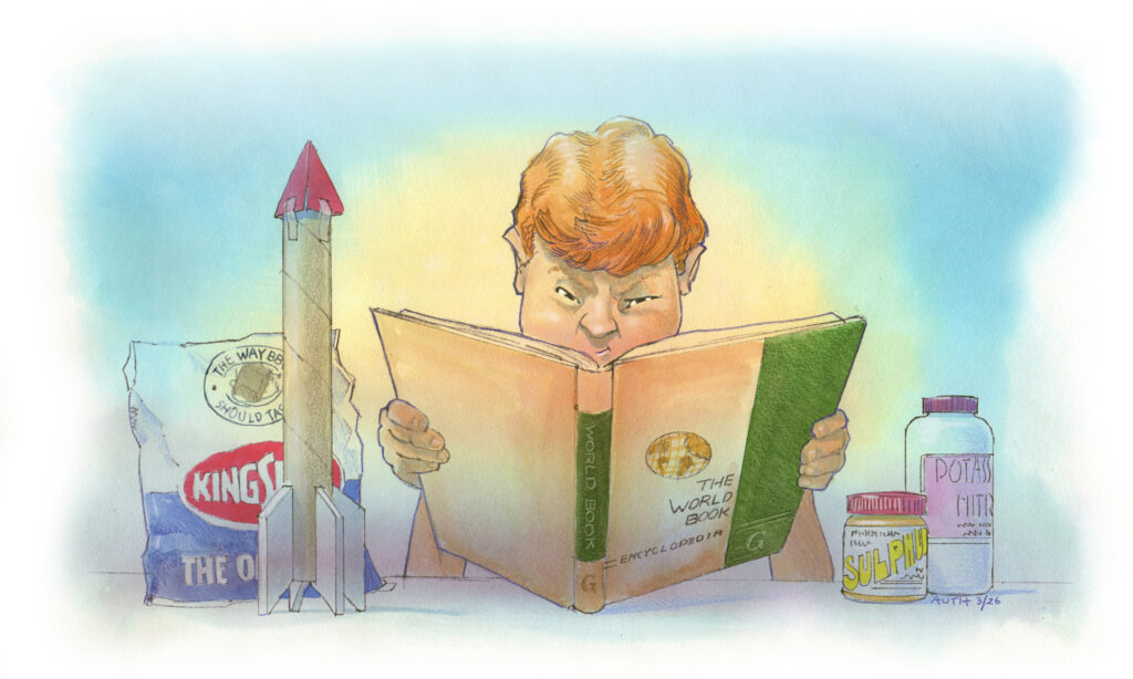 Like Google, encyclopedias allowed you to tumble down rabbit holes. At the time, my only interest was rockets and propulsion. By cross-referencing topics, I learned that the Chinese had invented crude rockets using gunpowder as a propellant. That discovery eventually led to the ingredients, and the proportions.  Soon I was making gunpowder in the basement with drugstore supplies and charcoal from my dad’s grill, perfect for my clandestine backyard experiments with homemade missiles.