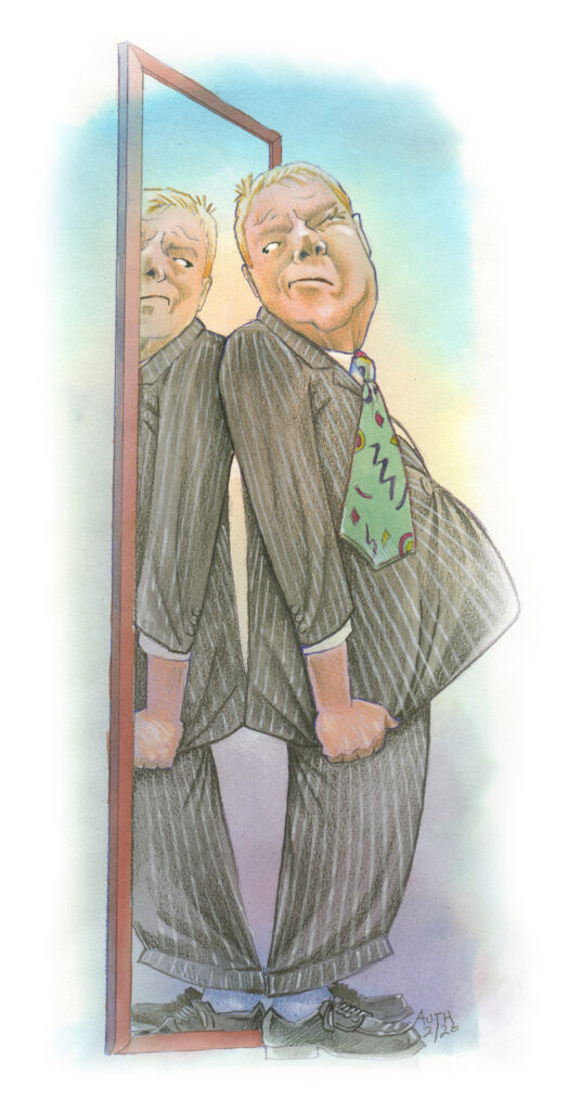 After more trial and error than I cared to deal with, we finally cobbled together a snug old suit, a shirt that fit, and a belt and tie that didn’t look like they were last worn during the Carter administration. I wasn’t comfortable, but it would get me through the few hours of the charity event.