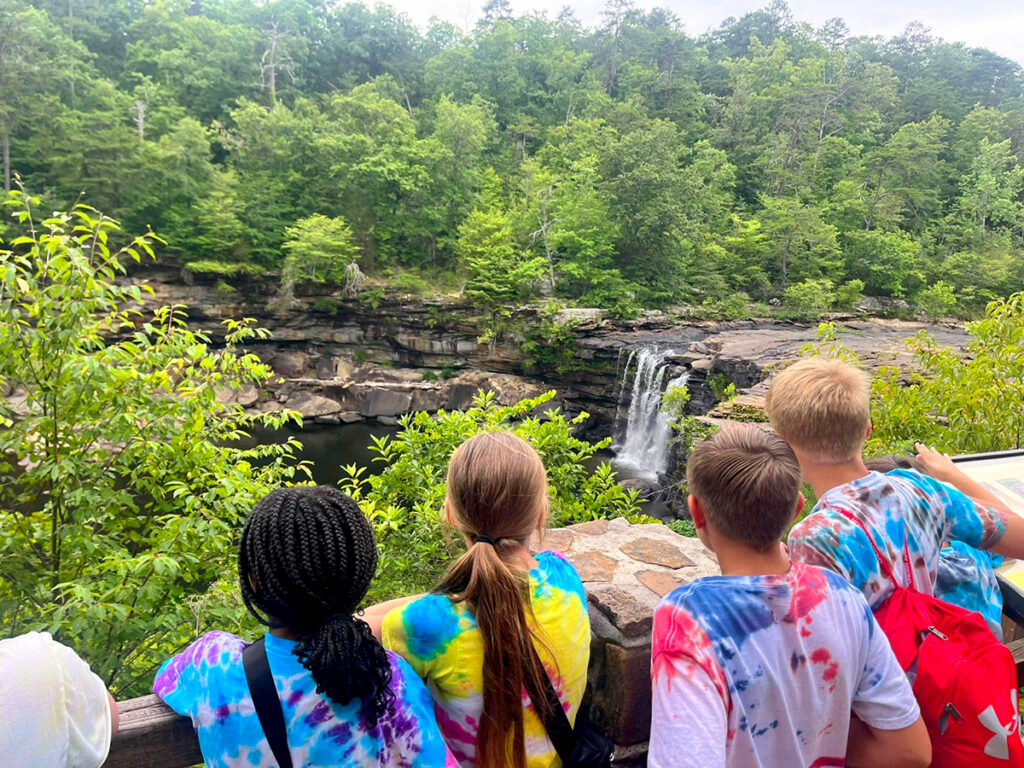 Within the preserve, there are numerous hiking trails, rock-climbing and rappelling opportunities and even a blue hole for swimming. The eleven-mile drive along the Little River Canyon Rim Parkway (Highway 176) offers eight scenic overlooks where visitors can pull over, eat a snack, watch waterfalls tumble over the rocks, and witness eagles and hawks ride the thermals — and all while standing at the edge of something larger than themselves.