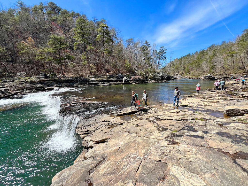 Visitors wander along the rocky shelves of Little River Canyon National Preserve, where the river has carved a spectacular natural playground. Photo Courtesy JSU Field School