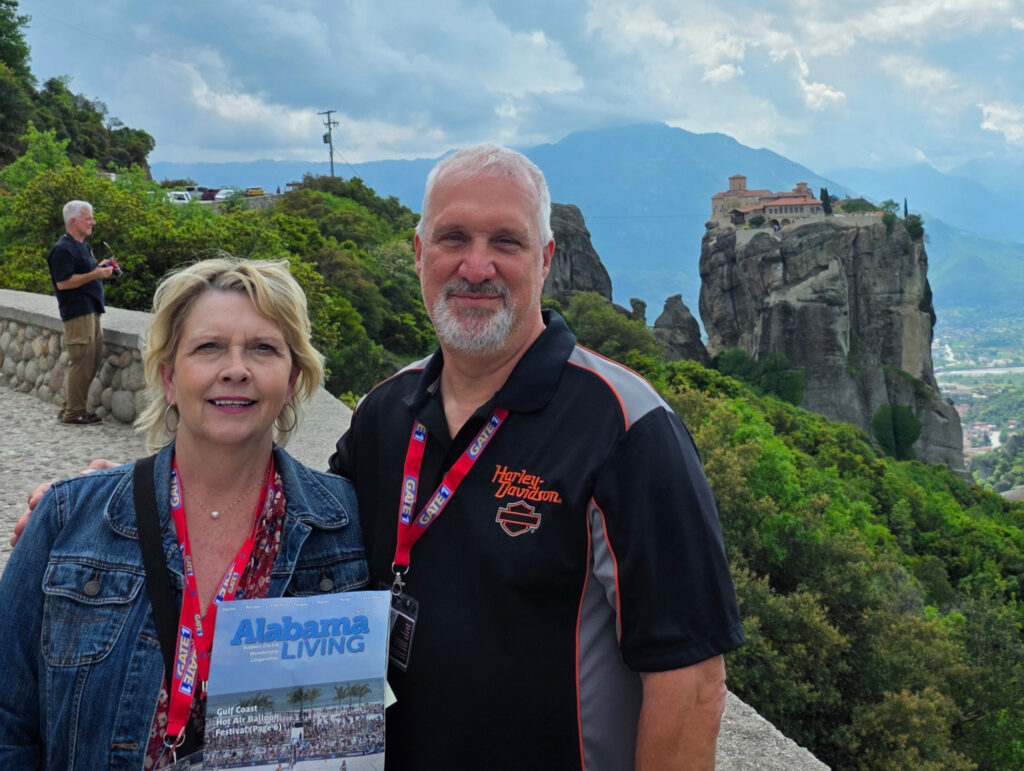 Joe and Leslie Sigmon and Emily and John Esneault from Priceville, members of Joe Wheeler EMC, hiked from Vernazza to Monterosso, Cinque Terre, Italy, last spring.Joe and Ellen Marinaccio had this photo taken with the Monastery of the Holy Trinity, an Eastern Orthodox monastery in central Greece, in the background. “It is situated at the top of a rocky precipice over 1,300 feet high,” writes Joe. “This is where they filmed the opening scenes for the James Bond movie ‘For Your Eyes Only.’” They are members of Baldwin EMC.Stacy McCune of Forest Home traveled to Wall, S.D., with her copy. She’s a member of Pioneer EC.Paul Forehand of Slocomb, a member of Wiregrass EC, took his copy along on a deep sea fishing trip aboard the Captain Anderson in Panama City Beach, Fla.Baldwin EMC members Greg and Alice Goulet of Foley traveled to Exumas in the Bahamas with their magazine. They tested the waters at Shroud Cay and went swimming at The Washing Machine.