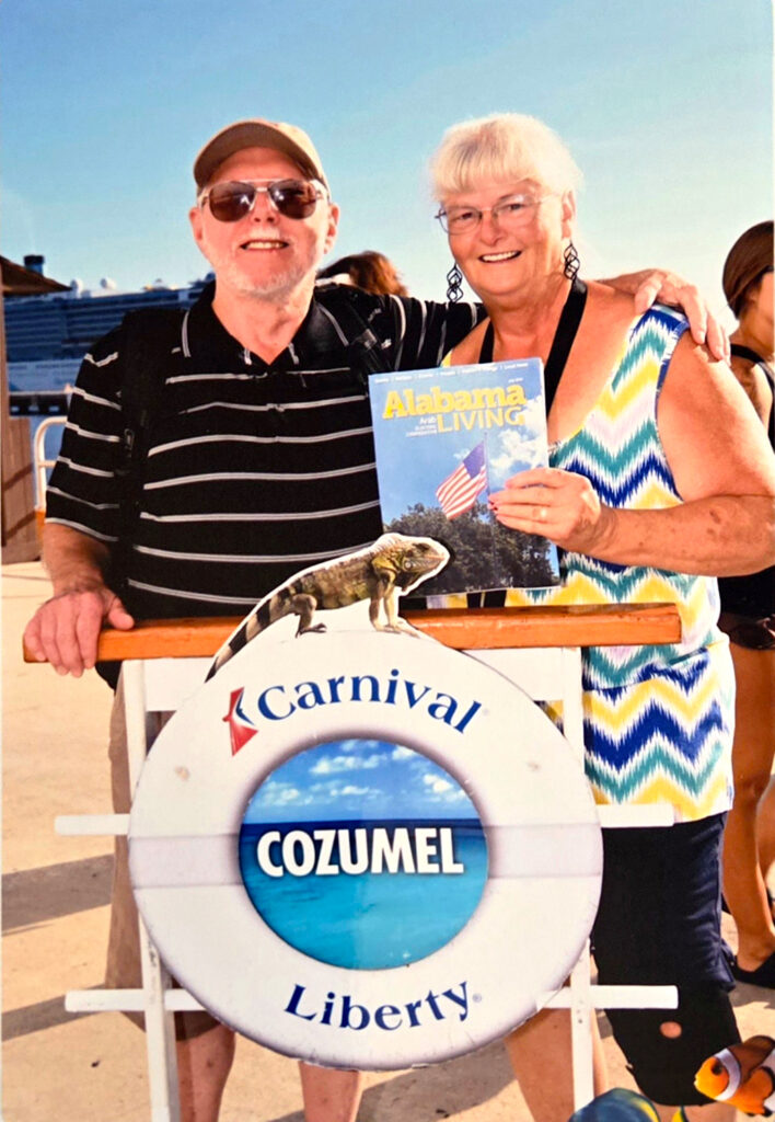 Isaac and Brenda Morrow of Arab EC took their magazine on their first cruise to Cozumel, Mexico; Roatan, Honduras; and Belize. Brenda reports they were “shocked when the guy taking the picture started singing ‘Sweet Home Alabama’ because he was not from America.”