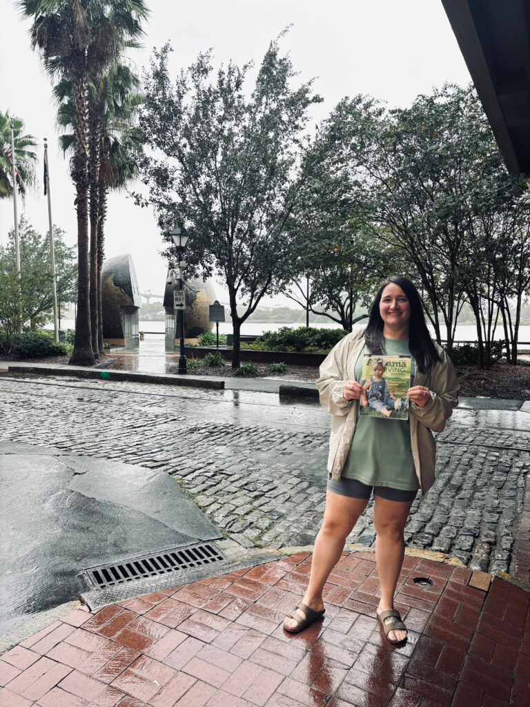 Jasmine Murr of Roanoke was photographed in front of the “A World Apart” war memorial in Savannah, GA. She and her mother, Belinda Murr, made the trip last year and Jasmine writes about the magazine: “We absolute love reading it and love to find the hidden dingbat!”