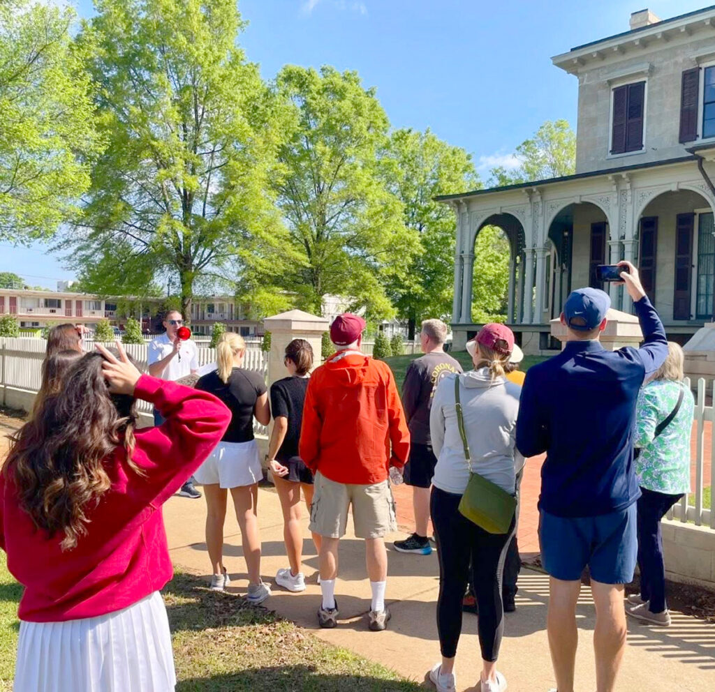 “We stop at the University Club — once the Governor’s Mansion,” says Hawkins. “It’s a Greek Revival-style home built in 1834, and people love to hear that Francis Scott Key (who wrote the poem that would become America’s national anthem) stayed here one time. Down the road, the seven-story Alston Building was Tuscaloosa’s first skyscraper and known in 1909 as America’s ‘tallest building east of Chicago on a dirt road.’ There’s so much to see here!”